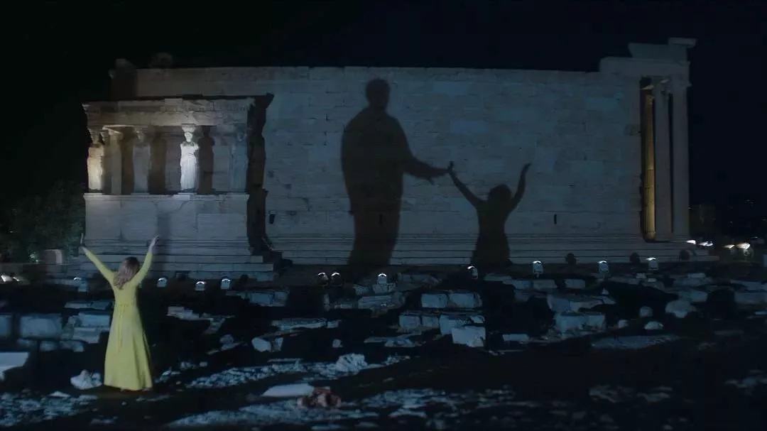 樸贊郁新劇《女鼓手》中男女主人公在雅典神廟下跳舞