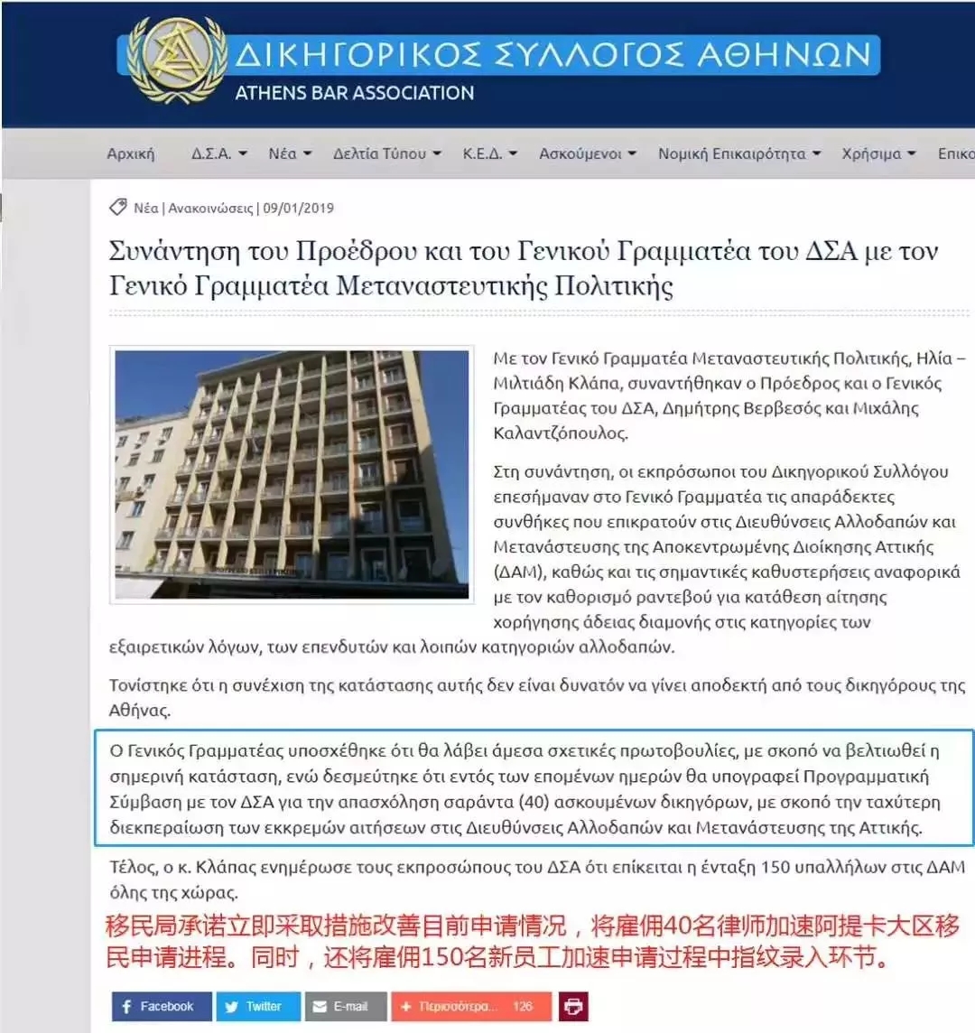 據希臘官方媒體報道,2019年1月9日,希臘移民政策部秘書長與希臘武裝部主席及雅典律師協會代表進行會晤,針對目前排期嚴重,申請積壓的問題進行了深入探讨。尤其是針對在外國人移民手續辦理時存在延誤的問題。
