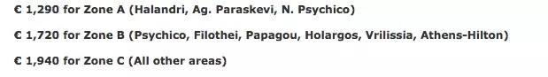 - Kareas - Ymmitos - Holargos - Papagou - Agia Paraskevi - Halandri - Daphne- Koukaki - Plaka - Kolonaki - Moshato - N.Phalero - Pangrati - Vyronas - Zographou.