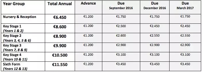●學費根據不同年級而定,幼兒園(nursery)每年6950歐,學前班(reception)每年8720歐,這兩個屬于junior school,1-6年級每年10600歐,7-9年級每年11560歐,10-13年級每年12920歐;