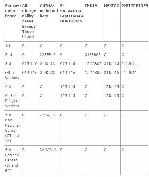 美國國務院簽證辦公室(DOS)剛剛發布了2016年12月簽證公告牌。壹起來看看最新的排期情況: