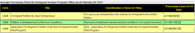 移民局發布了最新的2017年2月份EB-5平均審理時間(更新至2月28日),以下為最新數據: