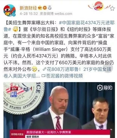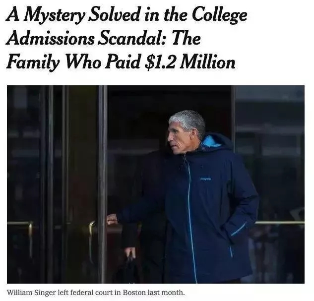 據《華爾街日報》和《紐約時報》等媒體報道,在本案牽扯到的衆多“富翁”家庭中,有壹個來自中國的家庭,向案件背後的“操盤手”威廉·辛格(William Singer)支付了高達650萬美元(約合人民币4374萬元)的賄賂。辛格本人對此供認不諱。然而,這個支付了650萬美元的家庭的身份仍然未對外公布。